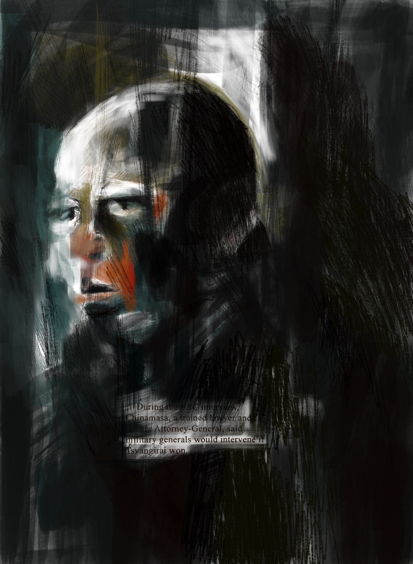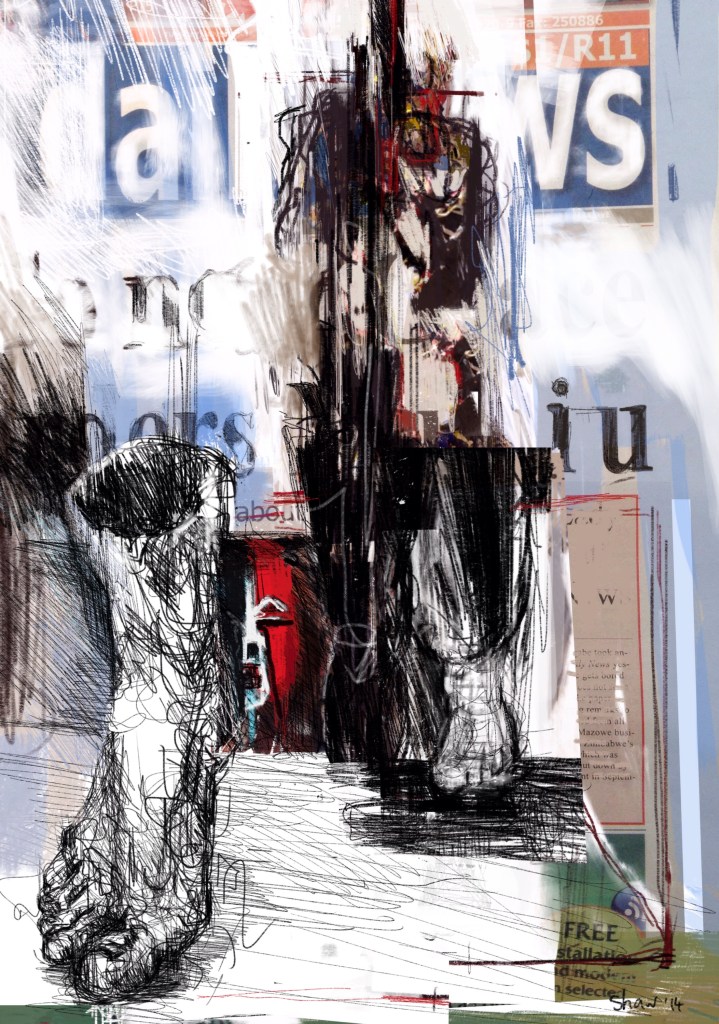 #Self:ID I, 2015. Digital drawing, 1024 x 1086px. #Self:ID II, 2015. Digital drawing, 1024 x 1086px. #Self:ID III, 2015. Digital drawing, 1024 x 1086px. #Self:ID IV, 2015. Digital drawing, 1024 x 1086px. Mute, 2016. Digital Drawing, 3094 x 4036px – printed to 18,8 x 15cm on Chinese tissue paper.Outsider Series, 2016 (I). Digital Drawing 3094 x 4036 px, printed size 17 x 27cm on Chinese Tissue.Outsider Series, 2016 (II). Digital Drawing 3094 x 4036 px, printed size 17 x 27cm on Chinese Tissue.Outsider Series, 2016 (III). Digital Drawing 3094 x 4036 px, printed size 17 x 27cm on Chinese Tissue.Outsider Series, 2016 (IV). Digital Drawing 3094 x 4036 px, printed size 17 x 27cm on Chinese Tissue.“Self-ID” and “Outsider Series”, 2016The Conference, 2016. Digital Drawing, 3094 x 4036px; printed size 30,9 x 40,4cm on matte wallpaper.The Broken Stool, 2016. Digital Drawing, 3094x4036px; printed on matte wallpaper.Runaway Beast, 2016. Digital Drawing, 3094 x 4036px; printed size 30,9 x 40,4cm on matte wallpaper.The Artist and his Models I ( second version): The Parade. 2015, Digital Drawing. 3094 x 4096 ps. (Acknowledgement of the work ‘Steel Skeleton II’ of A. Du Plessis.Waiting Room, 2015. Digital Drawing, 3094 x 4056pxWaiting Room II, 2015. Digital Drawing, 3094 x 4056pxSelected Works, 2015 – 2016Glass Mask I, 2014. iPhone Drawing, 1824 x 3209 pkGlass Mask III, 2014. iPhone drawing, 1824 x 3209 px.Glass Mask IV, 2014. iPhone drawing, 1824 x 3209 px.Glass Masks, from the exhibition “Masks”, Gallery Delta 2014Saints and Robbers. Digital drawing, 1024 x 1096 pxThe Demon and the mask of Christ. Digital drawing, 1024 x 1096 pxThe Captain Dies. Digital drawing, 1024 x1096 pxThe Wolves do their own Hunting. Digital drawing, 1024 x 1096 pxThe Demon and the mask of Christ. Digital drawing, 1024 x 1096 pxMen Hunted by Men. Digital drawing, 1024 x 1096 px. A Tribute to Nikos Kanzantzakis, 2013 (Selected Works)The Depths Within, digital drawing. 1024 x1096 pxHarare Man. Digital drawing, 1024 x 1096 px. Cut. Digital drawing, 1024 x 1096 px.The Search, 2012. Digital drawing, 1024 x 1096 px Accoutrement. Digital drawing, 1024 x 1096 pxDay 56, 2012. Digital drawing. 1024 x 1096 px.Day 58. Digital drawing, 1024 x 1096 pxChemical Dreams IIChemical Dreams IChemical Dreams IIIDay 64, 2012. Digital drawing. 1024 x 1096 px.Walking HomeWalk with Me, 2012.